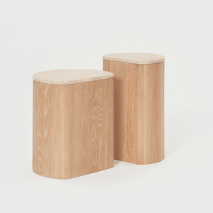The solid oak base can be paired with either a Carrara Marble or Travertine top. Style both sizes as a pair or on their own. Combine with the Arlo Coffee Table from the same story for a seamless and consistent style.
