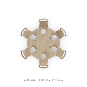 Choose the 1200mm size for 4 to 6 seats, or the 1500mm for 6 to 8. Pair it with the MIRA Dining Chair to complete your setting with natural comfort and continuity.